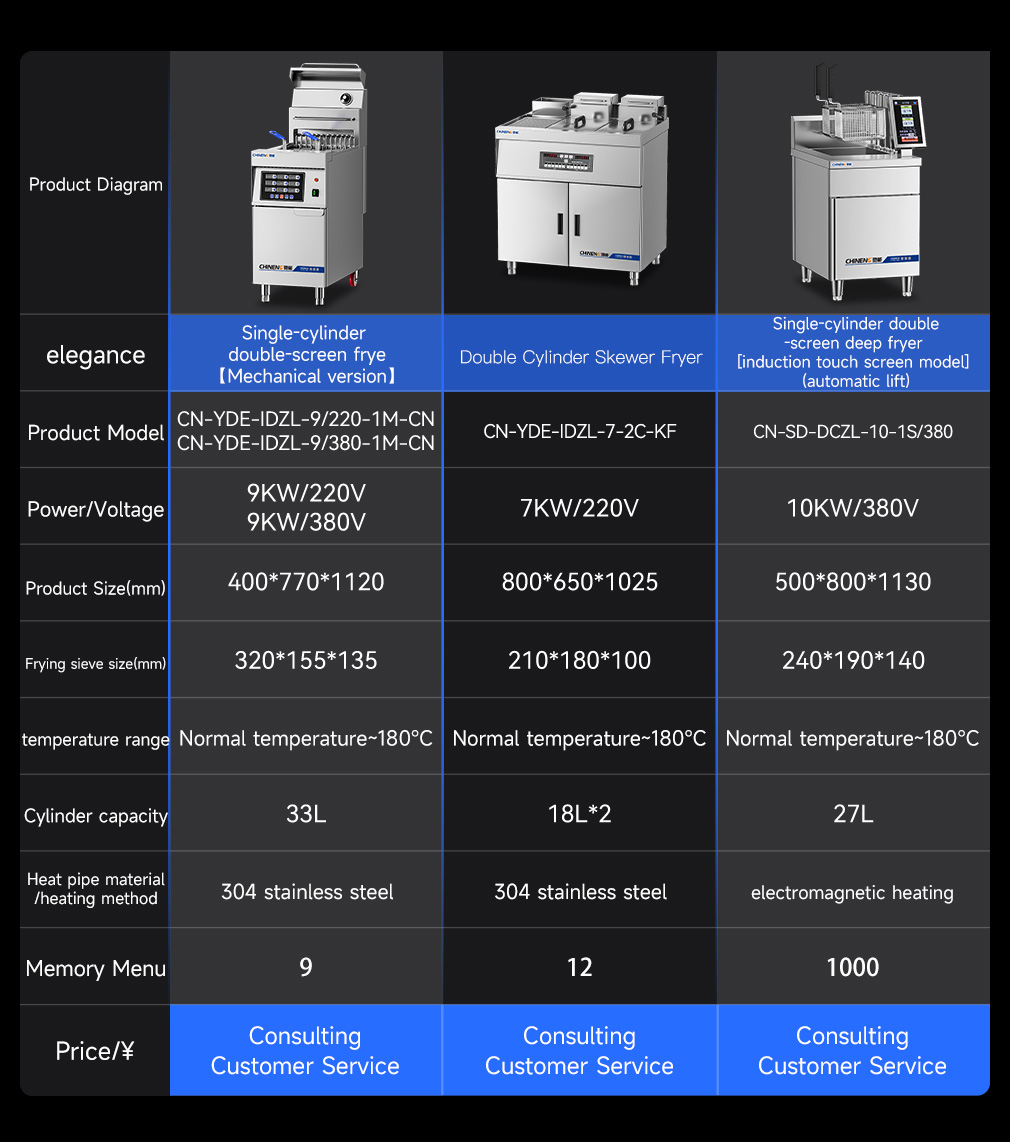 CHINENG will upgrade the product specifications from time to time according to the market feedback. The parameters on the page may not be updated in time, so the specific parameters are based on the real products. At the same time, there are many kinds of commercial kitchen equipment, and some products do not appear on the page. If you have equipment needs or customized services, please add the customer service WeChat below for detailed consultation. Thank you for coming!