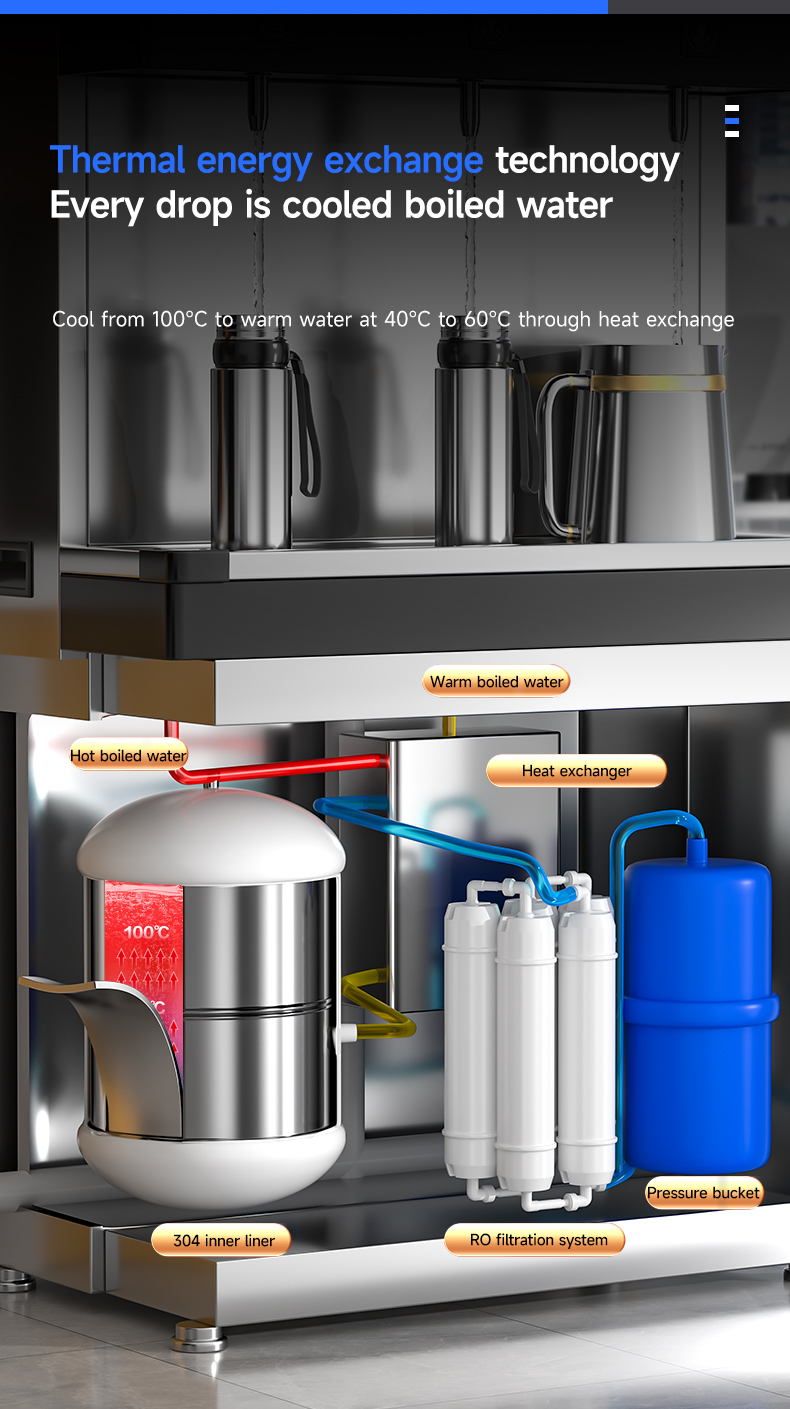 Water production capacity: 20L/h of boiling water, 80L/h of warm boiling water