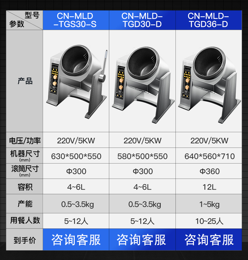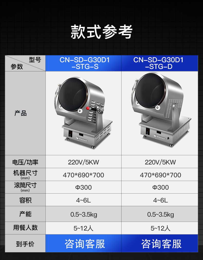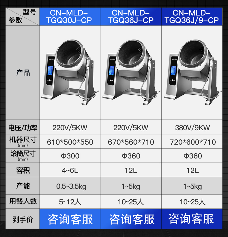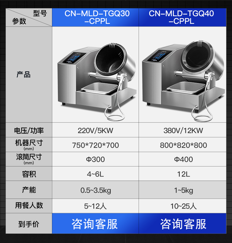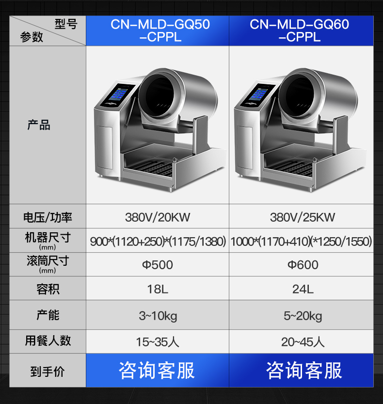电控翻锅+带急停功能+红外线测试+存储800个菜谱(智能学习功能)+智能实时语音播报功能+带三路自动喷料口